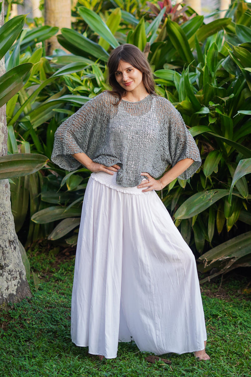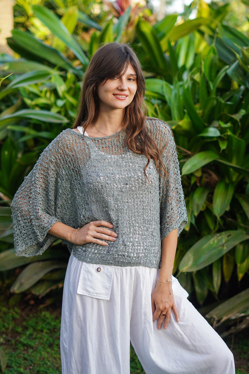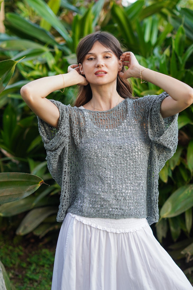 Crafted in a cool grey tone, this open-knit design adds texture and warmth without feeling heavy. Its free-size shape makes it a versatile staple — perfect for layering over camis, tee’s, skirts & dresses for that relaxed boho vibe.