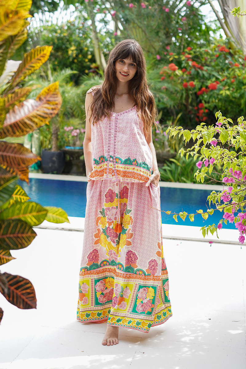 The Florentine Cami Top is a playful blend of vintage charm and bohemian spirit, designed to pair perfectly with our Florentine Maxi Skirt or to shine over denim.