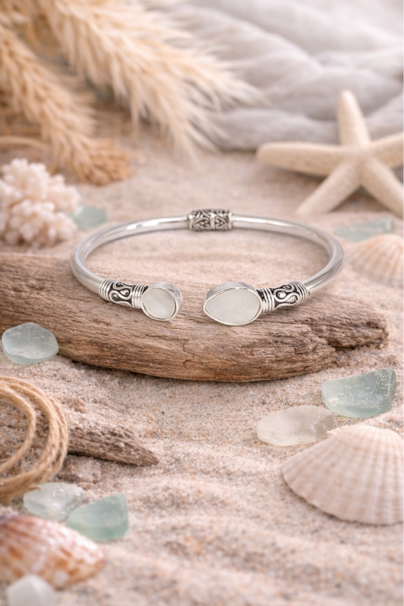 Ocean Aura Adjustable Silver Bangle – Pearl Mist